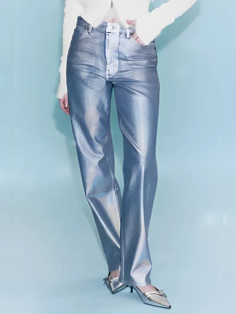 Calça Metálica Feminina – Brilho, Estilo e Conforto para o Dia a Dia