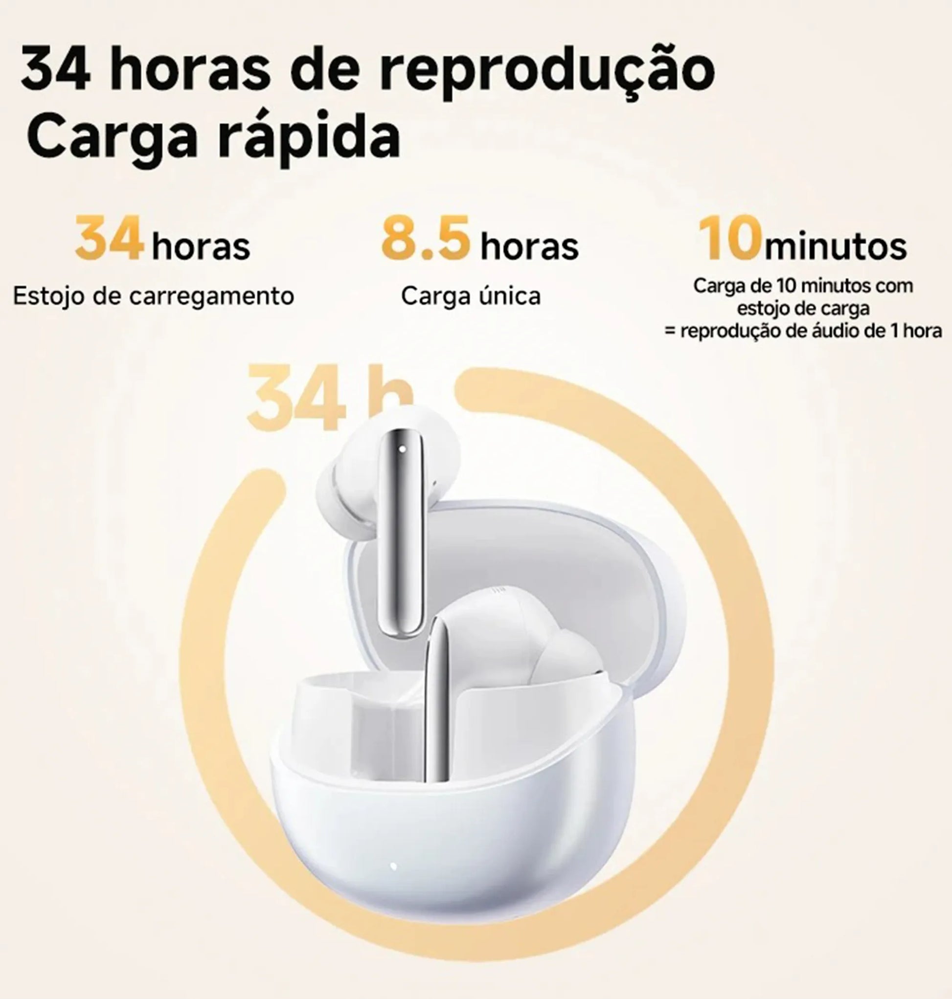 • Autonomia (ANC OFF): até 34h (estojo incluso)